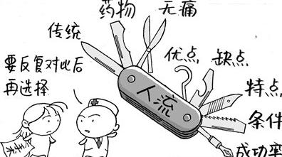 方便、时间短。人流手术操作相对简单,完善检查后手术过程绝大部分在10~20分钟内完成,操作时间短。人流术多在静脉全麻下进行,痛苦小,麻醉苏醒后孕妇不会看见妊娠物及血块,由此带来的心理恐惧减少。
