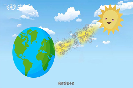 在天空中不同部分,蓝色的程度也不相同,天顶蓝色最深,而地平线附近的蓝色比较浅,来自地平线附近的光线,在大气中通过的路程比较长,遇到的粒子多,从而使白光与蓝光混合在一起,使蓝色变浅。