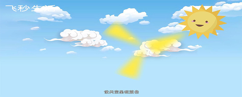 天空是蓝色的原因是因为大气对于太阳光的散射作用,使天空呈现蓝色,太阳光是由红、澄、黄、绿、蓝、靛、紫七种光所组成,波长较短的蓝、靛、紫容易被大气中的微粒散射,而波长较长的红光会透过大气中的微粒直接射向地面。
