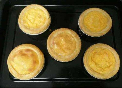蛋挞的做法 烤箱大概需要20分钟。食材:鸡蛋、牛奶、白糖。将2个全蛋和1个蛋黄打散搅匀。牛奶和白糖混合均匀,分5次加入打好的蛋液,每加一次,都在搅匀后,加下一次。过筛,盖上保鲜膜,放冰箱静置15分钟。取出倒入蛋挞模中8分满。预热烤箱220度,放烤箱中层,上下火20分钟即可。