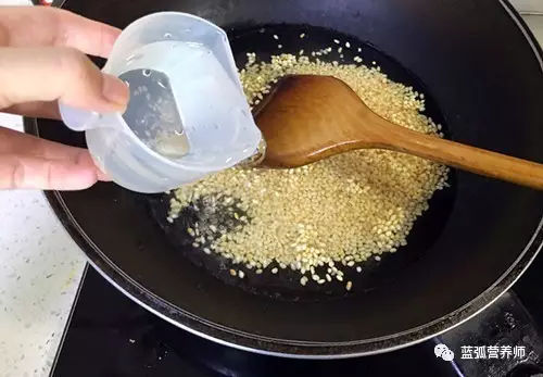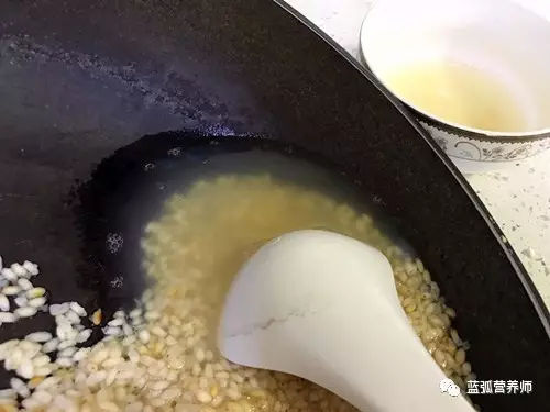 第四步:米炒好以后加水,水量约为米量的三倍。