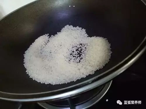 第三步:大米放入无油无水的锅里,开中小火慢慢炒,需要不停的翻炒防止受热不均和米变糊;