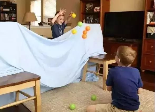 两把椅子上架一条床单,两边互相扔球,尽情享受游戏的快乐!