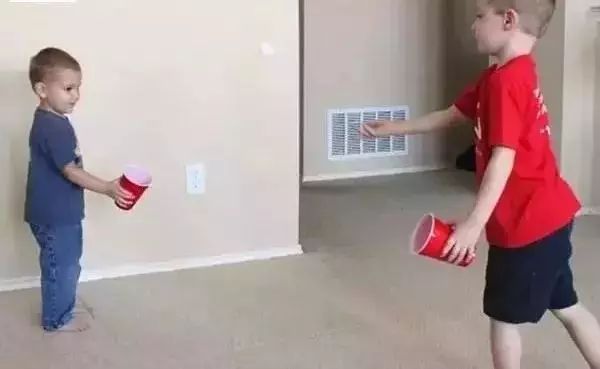 爸爸妈妈和宝宝,互相投掷乒乓球在对方的纸杯里,看谁投准的多。