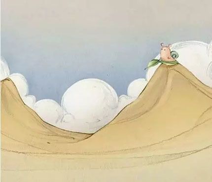 小蜗牛在想,如果真的有兔子那样的长腿,恐怕一跃就可以到另一个沙丘顶上了。