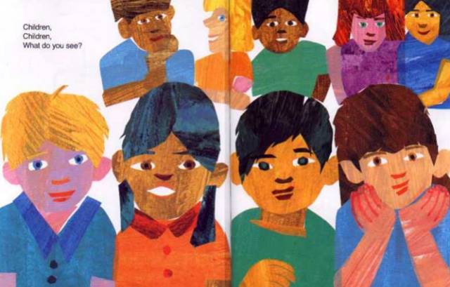 《Brown bear, brown bear, what do you see? 棕熊,棕熊,你看见了什么》是一本备受全世界小朋友喜爱的图画书,由艾瑞•卡尔一贯具有创意性的贴画构成,色调鲜明、活泼。随着一问一答的句子、重复的韵律与节奏,一本充满各种动物与色彩的图画书在孩子面前慢慢展开。幼小的孩子可以从这本书中学习语法、欣赏预测的节奏性,并学会各种动物的名称,认识颜色、增广视野。