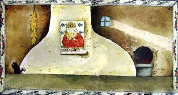 ➤奶奶叫我去灶上端菜,我刚用手指拈起一块,想放进嘴里。哎呀!灶王爷正看着我呢。