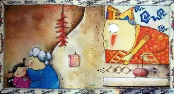 ➤可是,这个鬼主意可瞒不过灶王爷。他斜着眼看着我们,对这个小把戏心知肚明。不过,他也不生气,还是笑眯眯的。