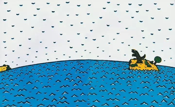 霸王龙和棘龙宝宝站着的这块陆地开始漂流。