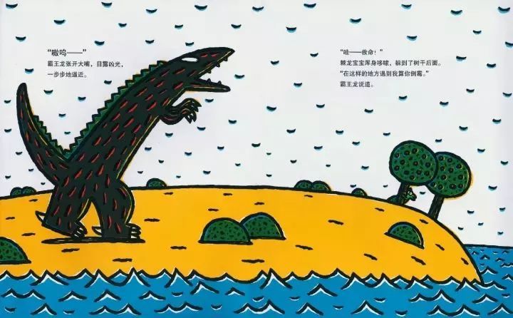 霸王龙说着,把棘龙宝宝轻轻地抓起来......
