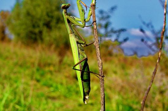 螳螂是肉食性昆虫,螳螂可捕食40余种害虫,如蝇、蚊、蝗、蛾蝶类及其幼虫和裸露的蛹、蟋蟀等小型昆虫,蝉、飞蝗、螽斯等大型昆虫。可作为蚜虫、大蜡螟、玉米螟、菜粉蝶、土元、黄粉虫等害虫的天敌,在田间和林区能消灭不少害虫,因而是益虫。