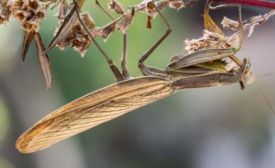 螳螂是一种名副其实的益虫。它是一种食肉性的昆虫,它的食物有棉蚜虫、红铃虫、玉米螟、菜螟、菜青虫、金龟子、苍蝇、蚱蜢等60多种害虫的成虫和幼虫,螳螂还是蝗虫的死对头。所以说,螳螂是一种有益的昆虫。
