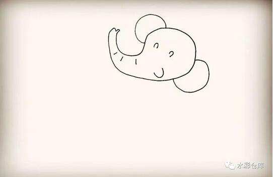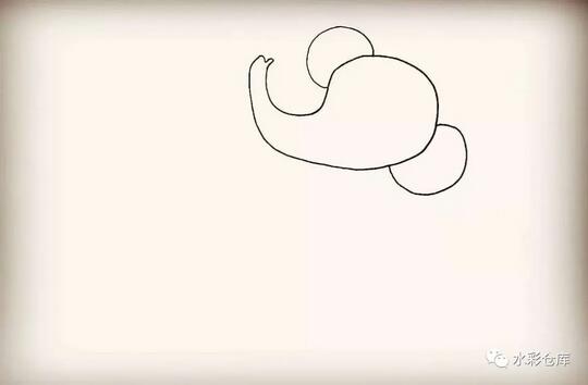 6、第六步:在头部下方画出大象的身体部分。