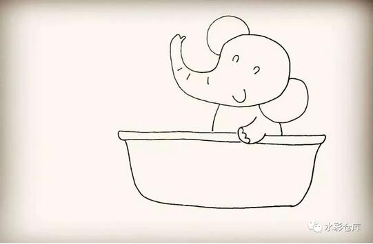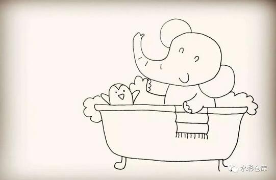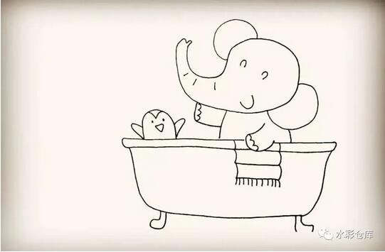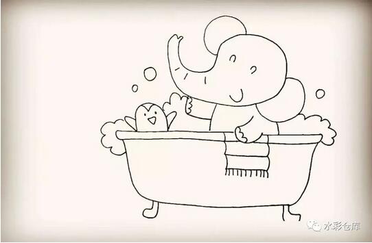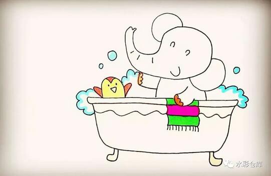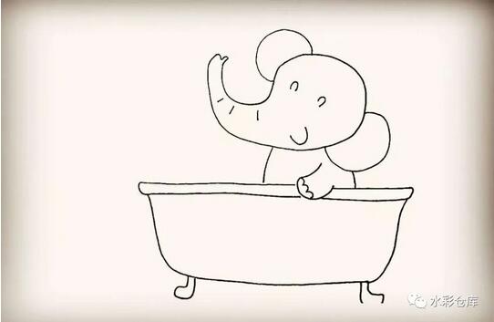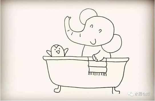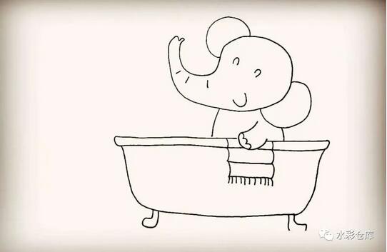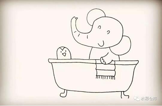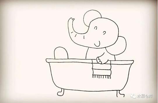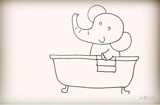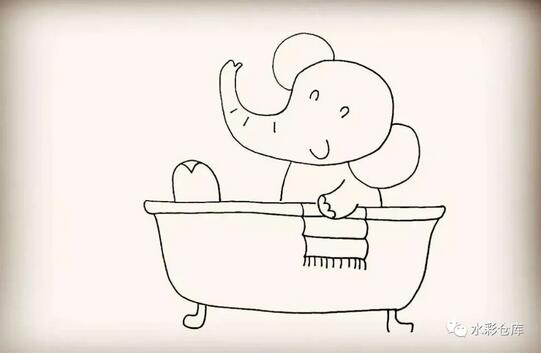 11、第十一步:然后在浴缸的边缘画上小象的毛巾。