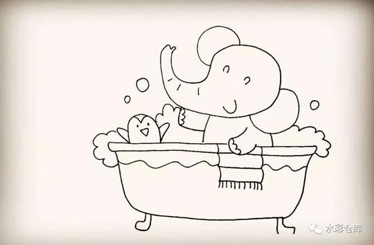 爱洗澡的大象简笔画