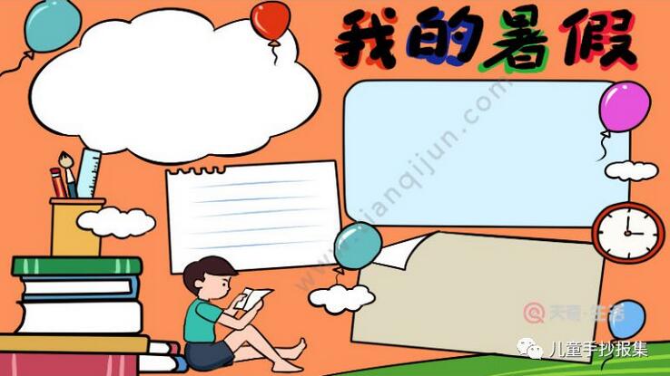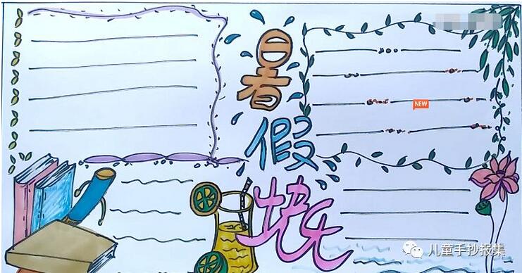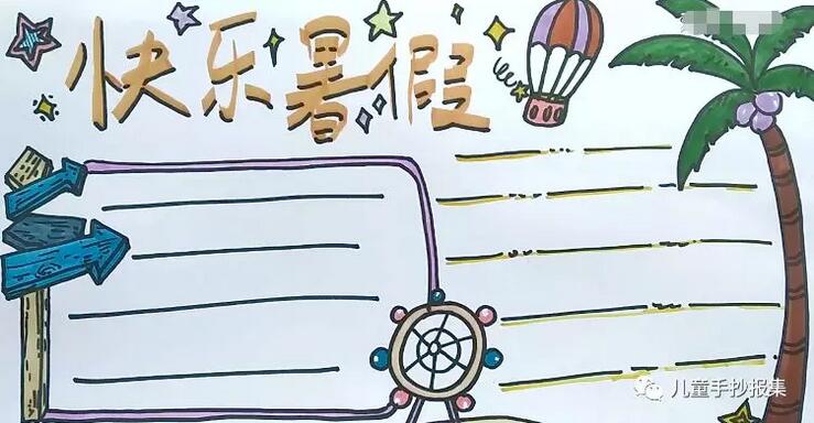 [手抄报]暑假生活手抄报 主要绘画工具 铅笔:2B或HB自动铅笔 水彩笔:12色或24色水彩笔 勾线笔:樱花记号笔、1.0针管笔、0.4针管笔 上色:60色或80色马克笔动漫套装 主要绘画元素 本款手抄报主要绘画