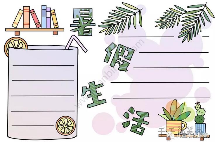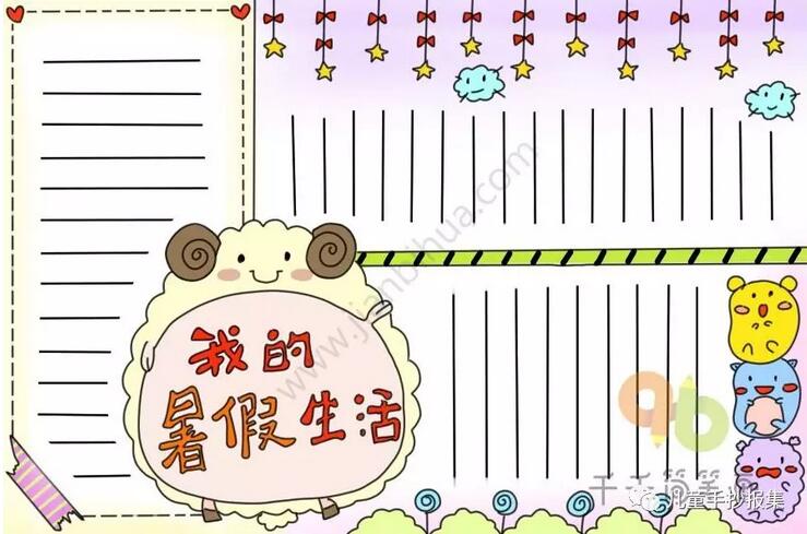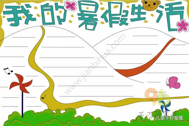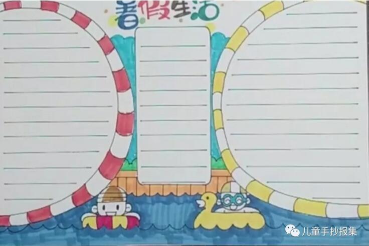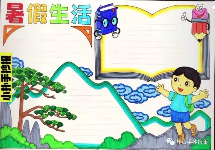 暑假生活手抄报在文字编排上可以写写自己的游玩日记,读书笔记,假期趣事等,在图片选取上可以用一些自己的所见之景,那么一幅简单精美的手抄报也就完成了!
