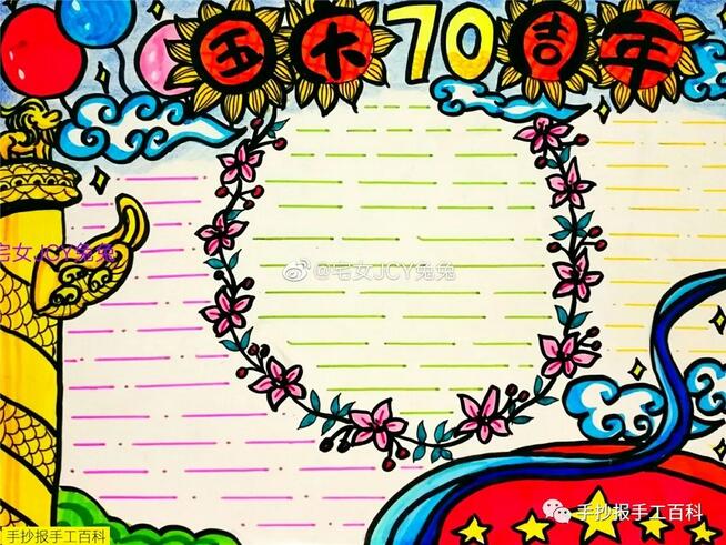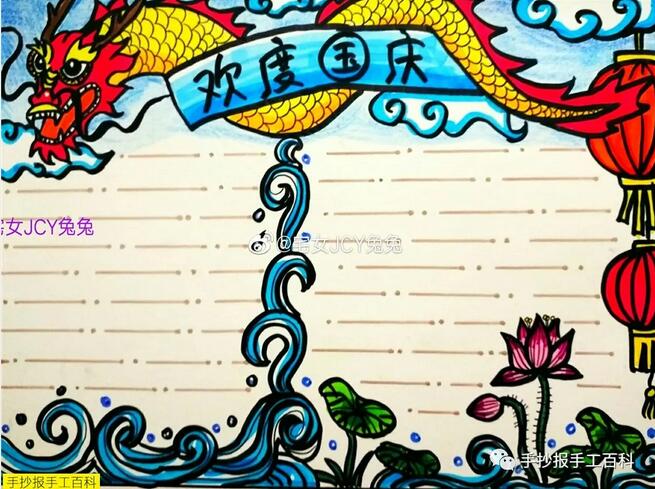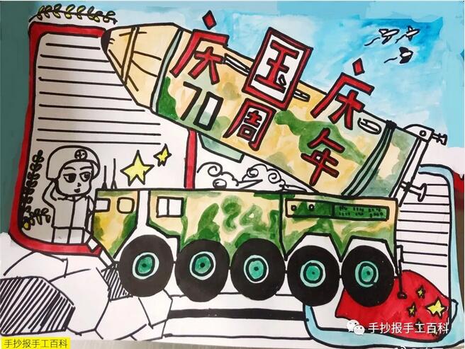 [手抄报]国庆节手抄报版面设计图片 主要绘画工具 铅笔:2B或HB自动铅笔 水彩笔:12色或24色水彩笔 勾线笔:樱花记号笔、1.0针管笔、0.4针管笔 上色:60色或80色马克笔动漫套装 主要绘画元素 本款手抄