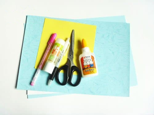 材料:彩色卡纸,剪刀,签字笔(铅笔),水彩笔,胶棒