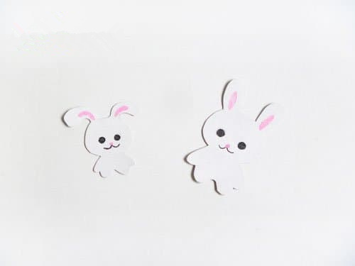 这一步可以自由发挥,用彩笔给小兔子添加上耳朵的颜色及眼睛嘴巴,甚至可以根据自己的喜好为小兔子加上好看的衣服哦!