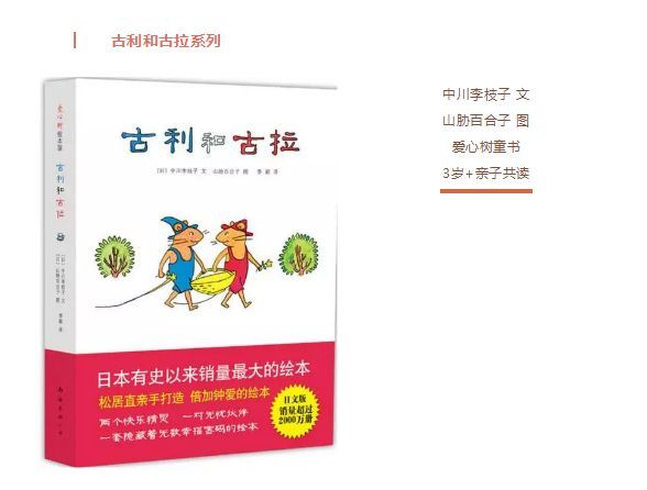 田鼠古利和古拉是一对善良可爱、无忧无虑的好朋友,他们每天最喜欢做的就是“做好吃的吃好吃的”,他们在森林里烤蛋糕,到原野上野餐,还举办盛大的南瓜宴……而最最开心的事情莫过于和朋友们一起分享,那热闹欢快的场面迷住了无数小读者。