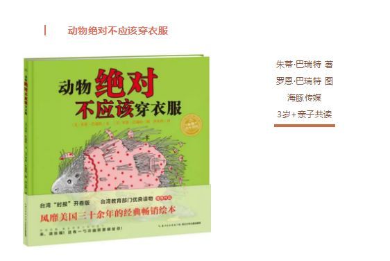 独特的视角,天马行空的想象力,帮我们脑补了各种动物穿衣服的样子,同时也让孩子认识了各种动物及其特性。