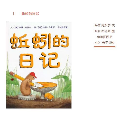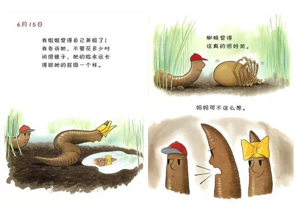 @蓝锦:最初选这本书,只是让宝宝了解日记是怎么一回事!宝宝看了对书中的小蚯蚓无限喜欢,尤其是听到蚯蚓爸爸吃报纸,说他姐姐的头和屁股是一个样,都咯咯咯咯笑不停。