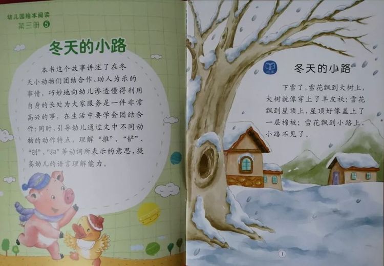 本书这个故事讲述了在冬天小动物们团结合作、助人为乐的事情,巧炒地向幼儿渗透懂得利用自身的长处为大家服务是一件非常高兴的事,在生活中要学会团结合作:同时,引导幼儿通过文中不同动物的动作特点,理解“推”、“铲”、“创”,“扫”等动词所表示的意思,提高幼儿的语言理解能力。