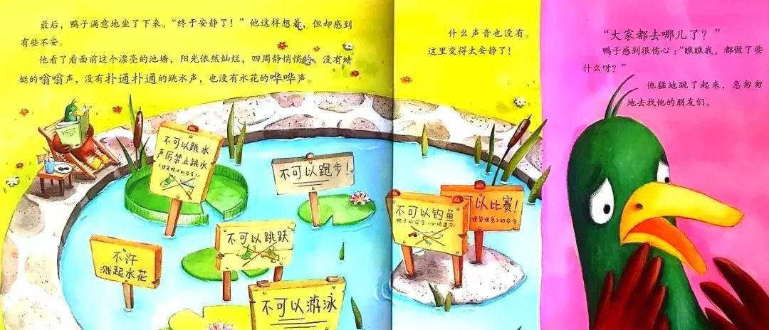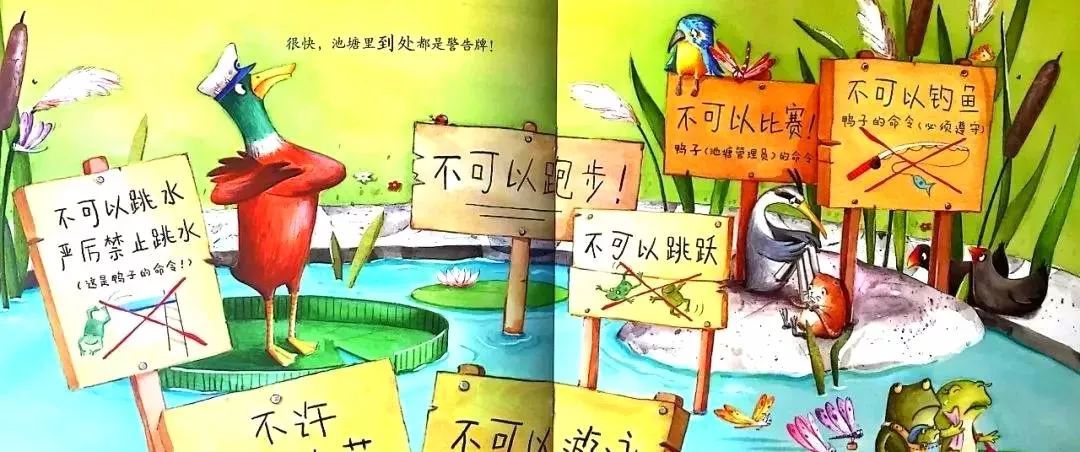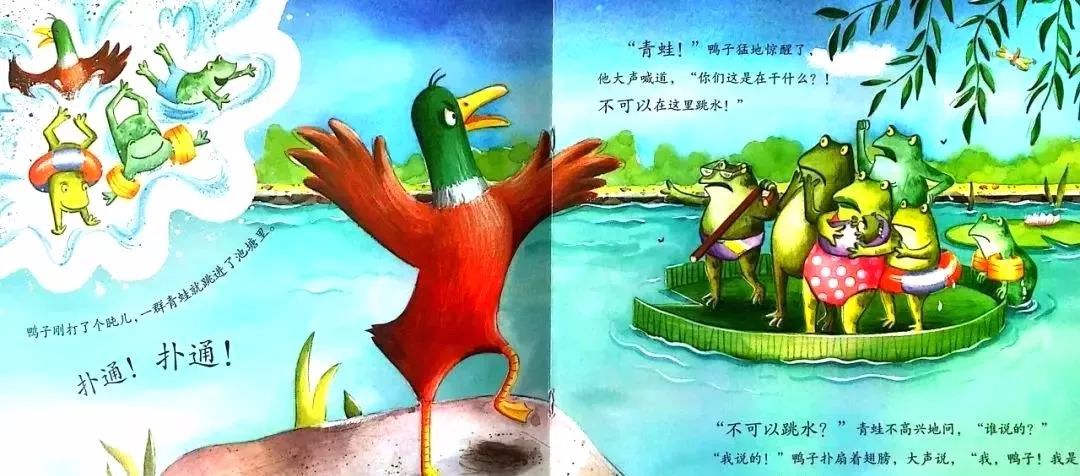 “青蛙!”鸭子猛地惊醒了。他大声喊道,“你们这是在干什么呢?!不可以在这里跳水!”
