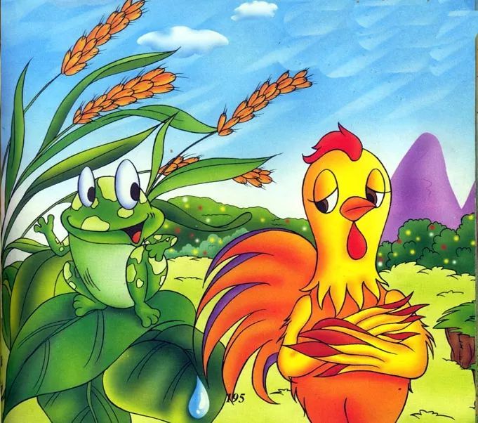 大公鸡碰到了小青蛙,跑过去问:“小青蛙,我美吗?”小青蛙说:“你的外表确实很美丽,但一个人美不美,不能光看外表,还要看他能不能尽心尽力的帮助别人,为大家多做好事。”大公鸡马上反驳道:“为了我漂亮的外衣,我才不会帮别人做事呢!”说完就走了。