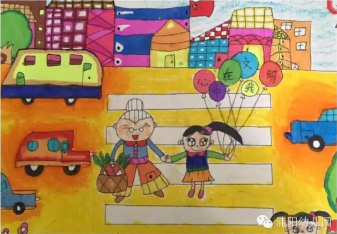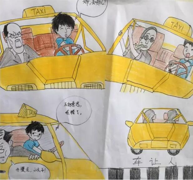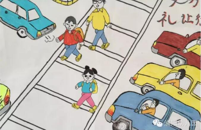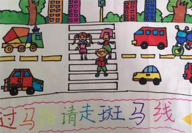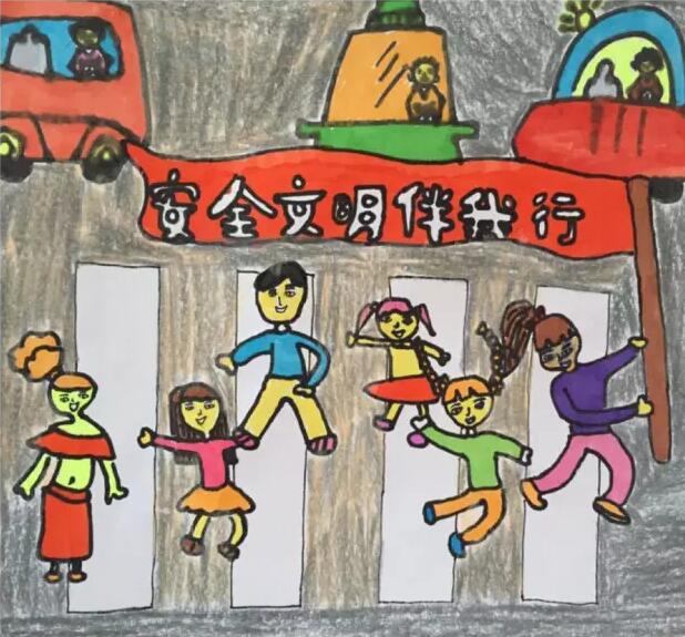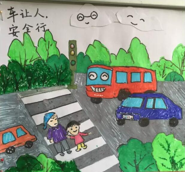 瞧,家长和孩子们用手中的五彩画笔,展开想象的翅膀,画出一幅幅各具特色的“车让人”图画,形象大胆地描绘处出了车辆行人文明出行的温馨景象,展现着孩子对安全的理解,表达着孩子对幸福生活的美好向往。孩子们的作品画面内容丰富,形象生动,从不同层面、不同角度尽情表达内心的感触,将文明交通安全展现得淋漓尽致,极大地丰富了孩子们的安全知识。