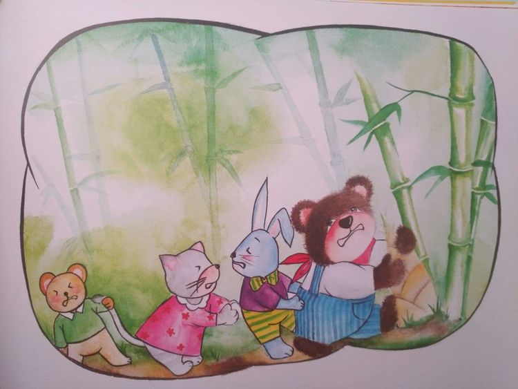 熊宝宝说:“你每天给我挖好多又嫩又新鲜的竹笋,让我长得又高又壮,小朋友们都没有我力气大。”