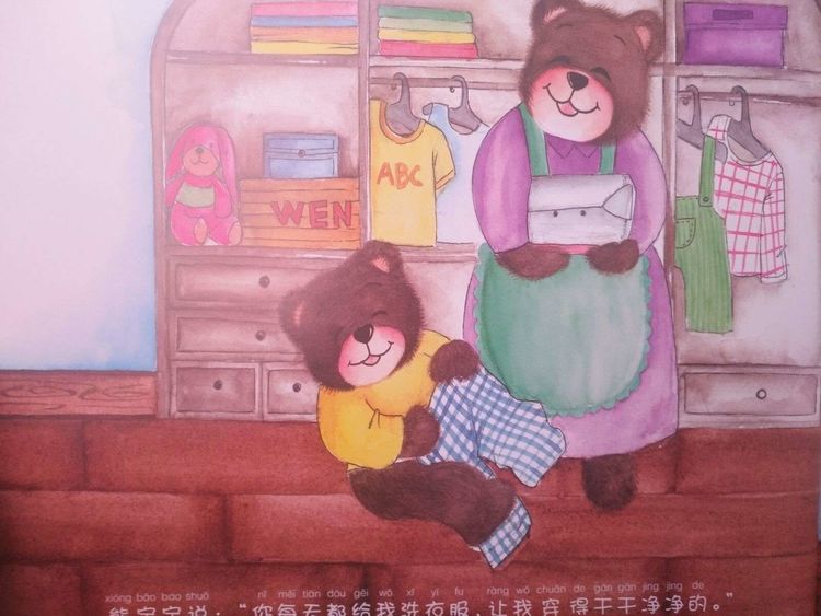 熊宝宝说:“你每天都给我洗衣服,让我穿的干干净净的。”