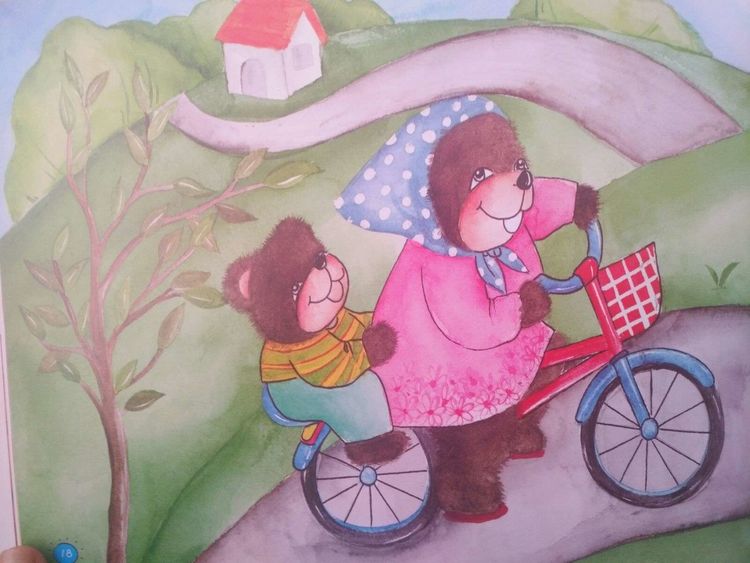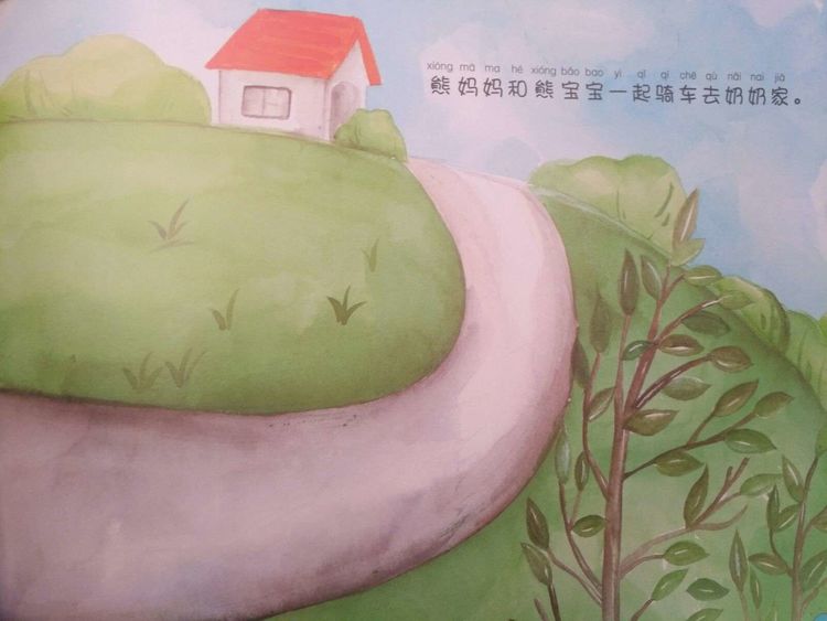 熊妈妈和熊宝宝一起骑车去奶奶家。