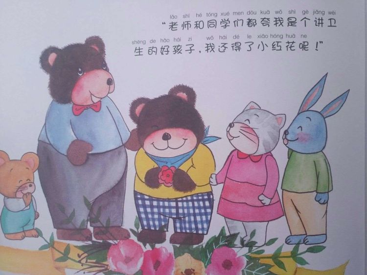 “老师和同学们都夸我是个讲卫生的好孩子,我还得了小红花呢!”