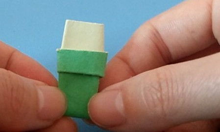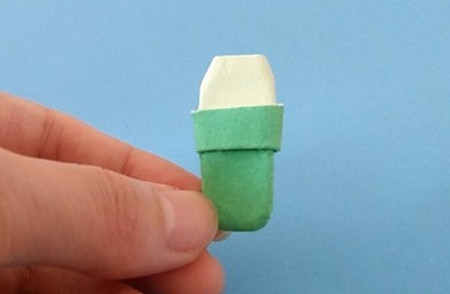 4、第四步:最后把四个角折叠一下,把拖鞋上面部分捏起来就可以了。成品图。
