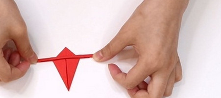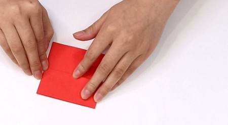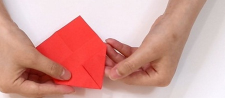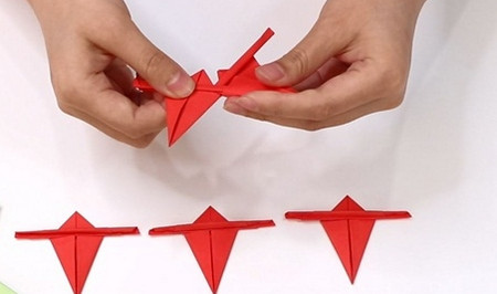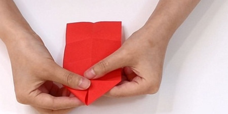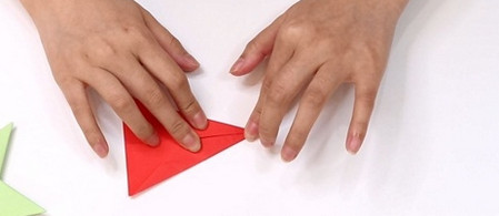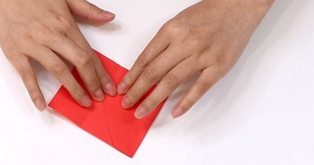 [折纸大全]多层五角星怎么折:正方形卡纸沿对角线折出十字形。折成三角形后,两边两角向中心的角折去。接着两边再反向对折。展开折痕后,另一边的角向中间折去,顶部对齐。展开后,这个角按折