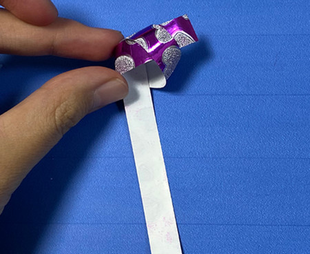 第三步:将纸条一端打一个结,如图所示。