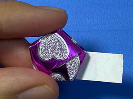 第六步:将折纸的多余出来的部分塞到五角星里。
