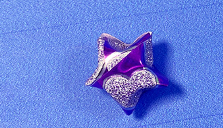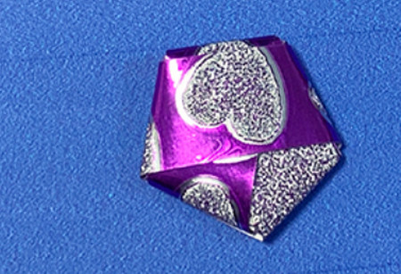 第七步:用手指将五角星的边沿中心捏鼓,这样一颗简单的五角星就折好了。