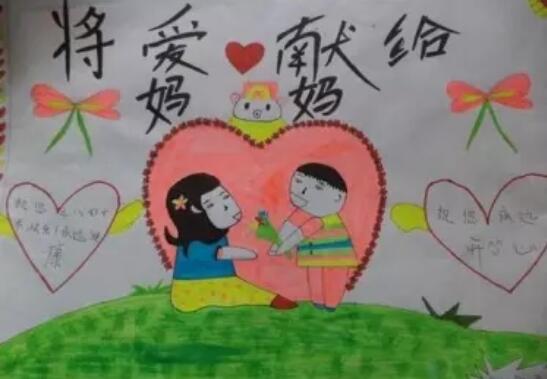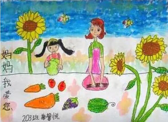 [手抄报]首先在右上角的位置写上粉红色的3.8妇女节主题报头,左边画一个给妈妈送礼物的小女孩,底部画一片向日葵花,加上两个文字框,背景涂成浅粉色,给小女孩和妈妈涂上颜色,向日葵涂成橘