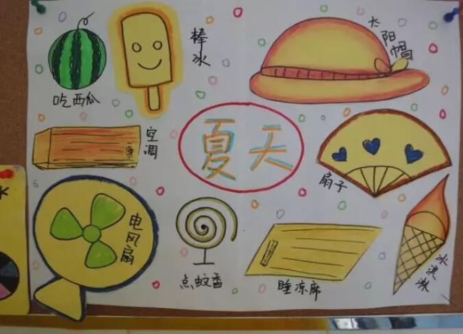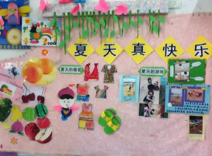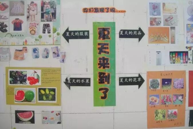 把夏天的各种发现直接明了地以呈现在这面墙上,孩子就能随时了解夏天的情况。