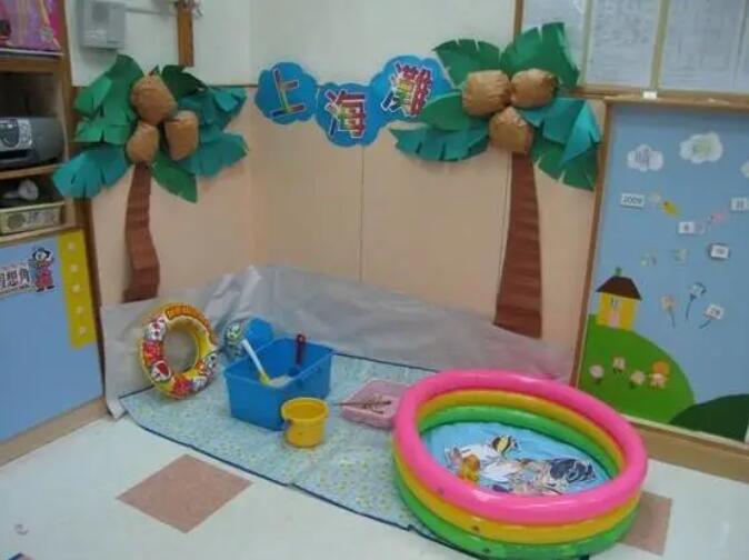 墙面布置与区域创设结合在一起,教室里瞬间有了凉爽的一角啦!