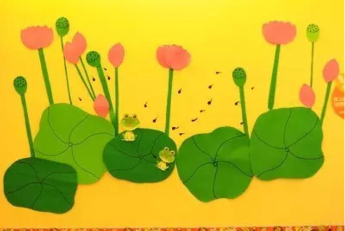 配色鲜明的荷花朵朵盛开,高明度手工的折纸让小鱼都生动起来了呢