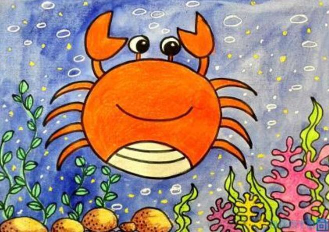 [简笔画大全]海底世界手指画儿童画步骤 1. 用彩笔画三条波纹作为海浪。 2. 用指印印出章鱼和水母的轮廓。 3. 画出章鱼的腕和水母的触须、五官。 4. 用指印印出螃蟹并画上钳子、腿、眼睛和嘴。 5. 用指印