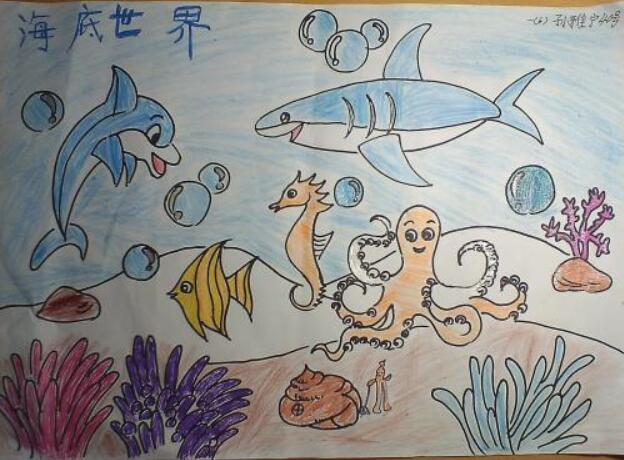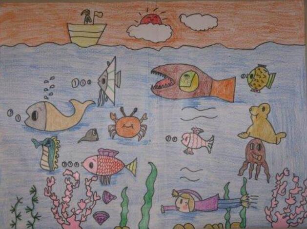 [教案]《美丽的海底世界》幼儿园小班教案 活动目标: 1、欣赏海底世界,感受大海的色彩美。 2、会大胆均匀地涂色,学习用波形海棉棒滚印海水的技能。 3、喜欢美术活动,体验活动中的快乐。