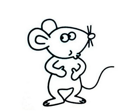 [简笔画大全]首先画出老鼠两只大大的耳朵,再画出老鼠的身体轮廓,头部尖尖的,在老鼠的身后画上细长的尾巴,就可以给老鼠涂色了,给老鼠的整个身体涂上灰色,简单的老鼠简笔画就完成了。 小学生