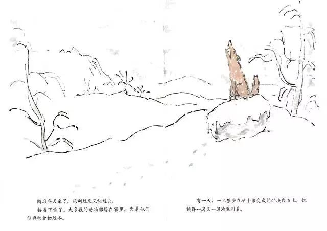 接着下雪了。大多数的动物都躲在家里,靠着他们存储的食物过冬。