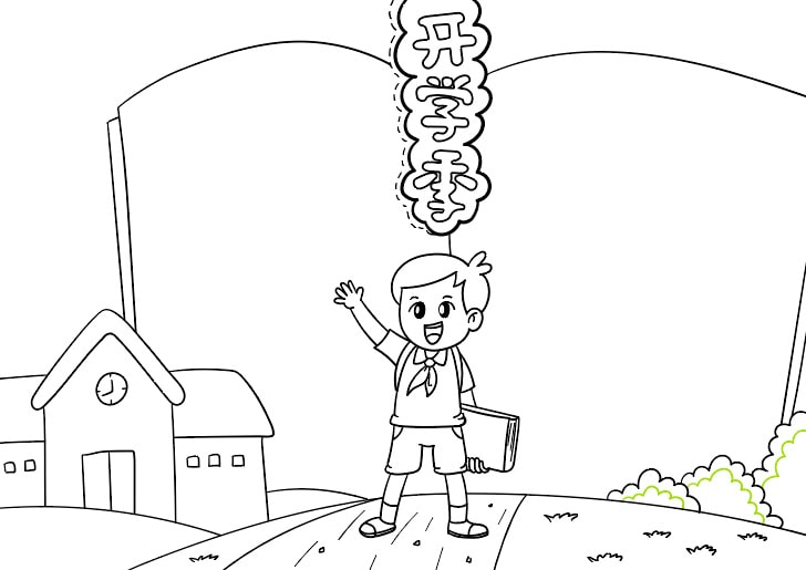 首先画一个打招呼的小朋友,背着书包,手里拿着书。然后在小朋友脚下画上地面。地面上画上小草等修饰。上方写上“开学季”三个字,旁边画一个小房子。画一本大大的书作为文本框。画上草丛、太阳、云朵等背景。最后涂上漂亮的颜色,画简单好看的开学啦手抄报就画好了。