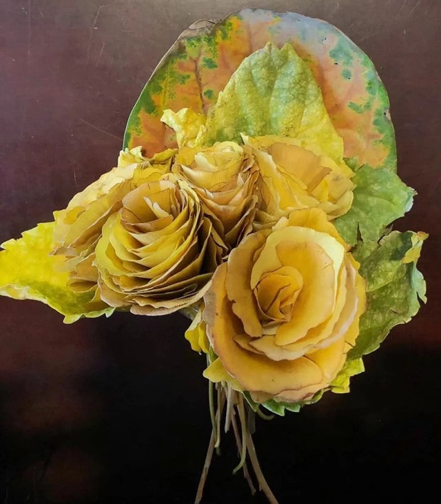银杏树叶手工制作玫瑰花束教程